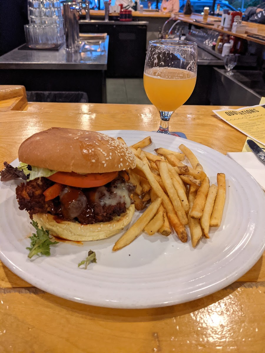 Fun local place. Very busy. I was glad to see so many people actually talking to each other and not looking at their phones. I had a pizza and brussel sprouts. Pretty good. Brought some friends here and they enjoyed this place too.