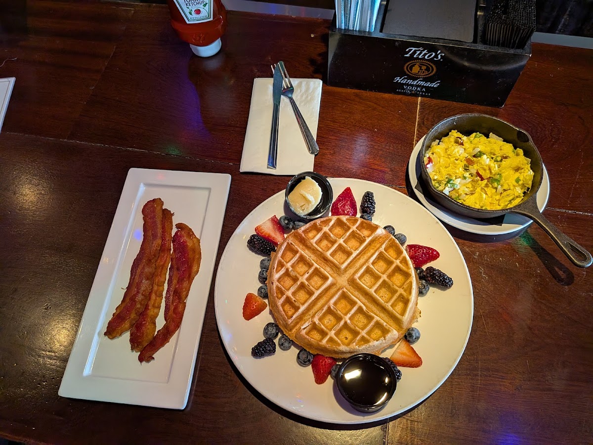 Food is reasonable and good, service could be a little better, I have had fried chicken and waffles here like a year ago, the best I've ever had not sure if they still have it